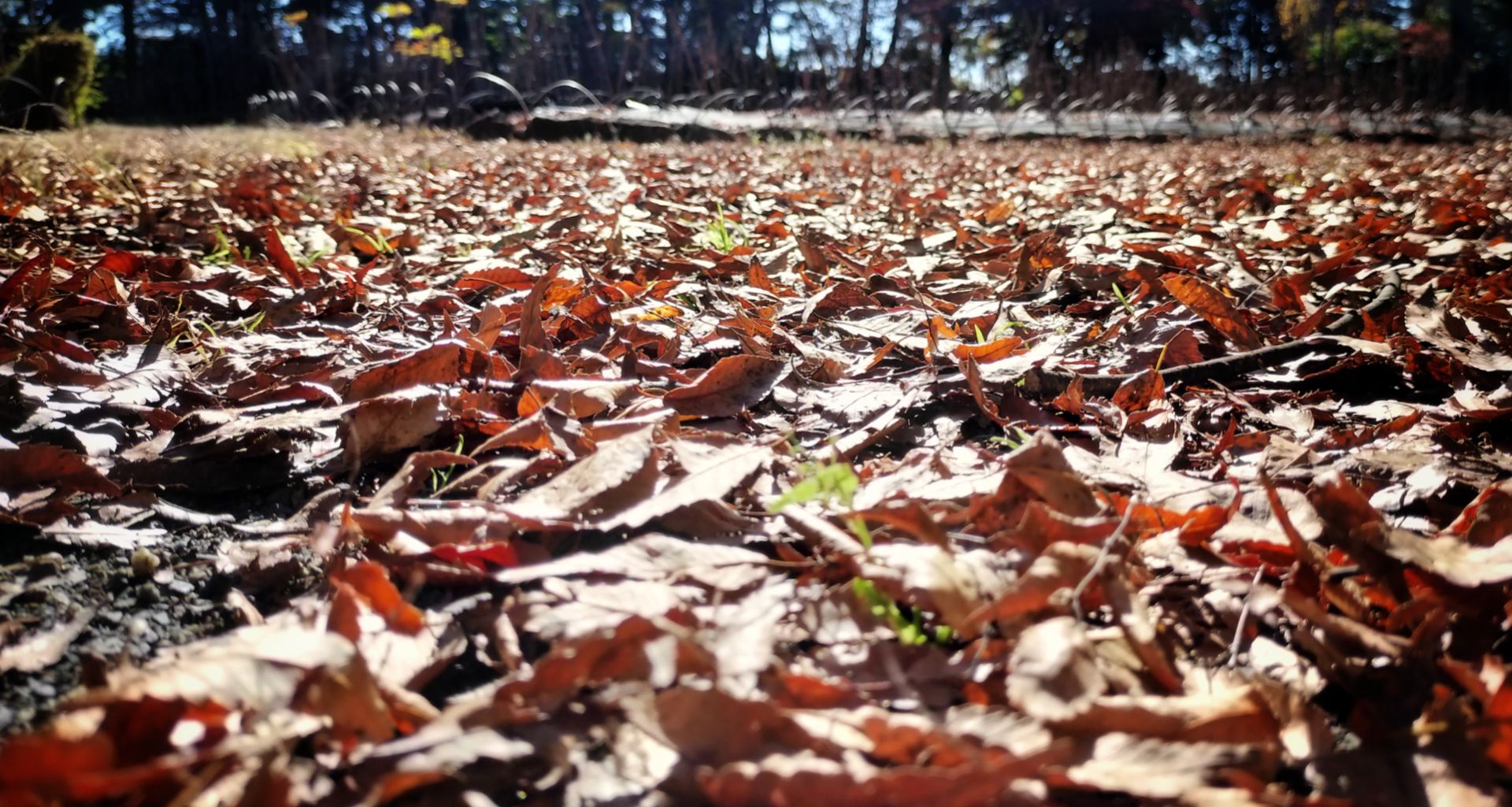 天気は快晴で、昼は上着を着なくても外を歩けるくらい快適。いつもどおり、近くの公園を散策。いよいよ紅葉も本番。赤や黄色、緑と枯れ葉、そして空の青が目に痛いくらい輝いてます。