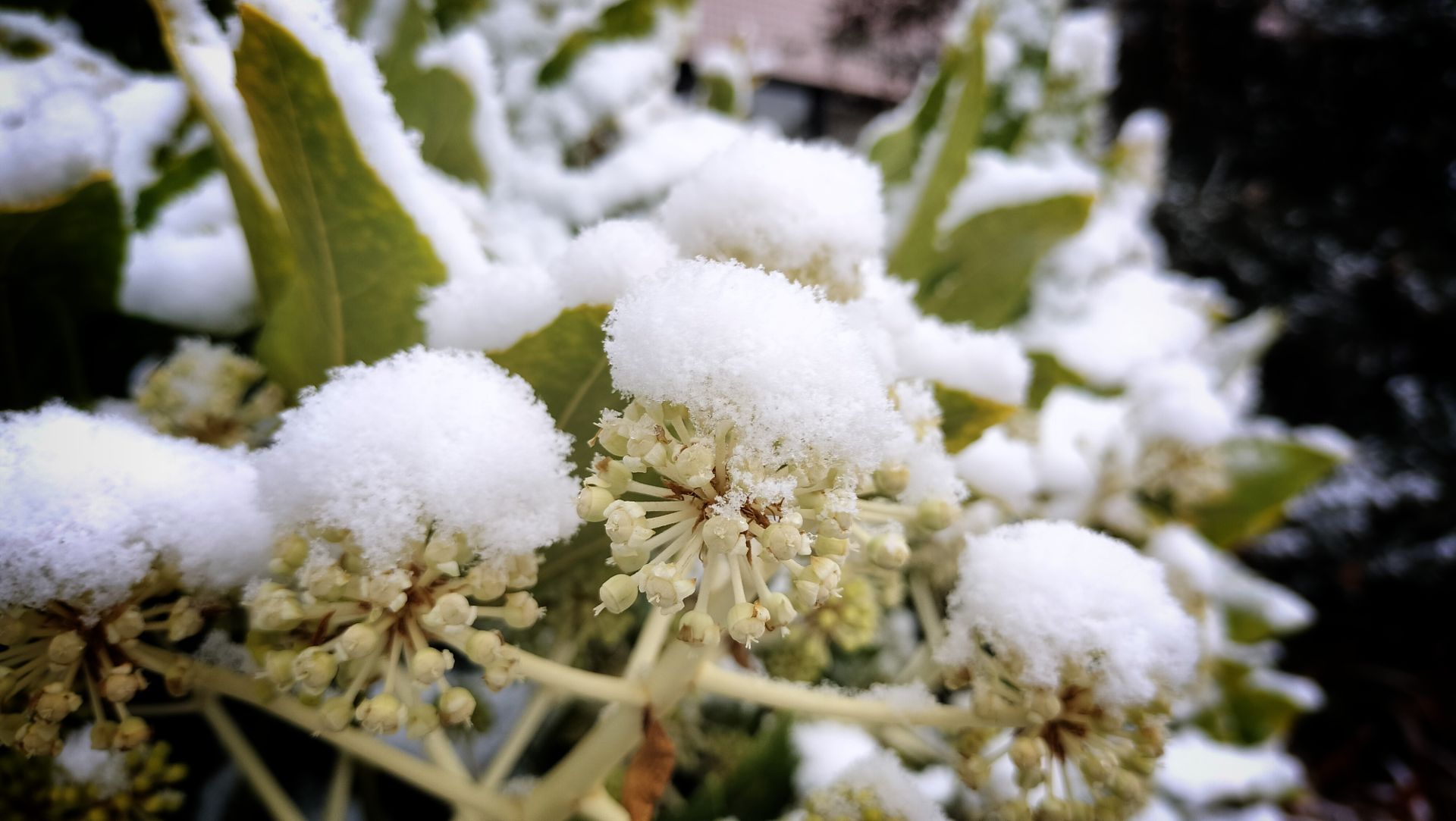朝起きるとすぐに三男から「雪が積もってるよ」と教えられました。外を覗くと、屋根や木々が真っ白くなっている。雪はまだ降り続いていたけど、道路に積もるほどでもない。通勤も混雑せずに通常どおりの到着。お昼までに天気は良くなったけど、風は冷たいまんま。